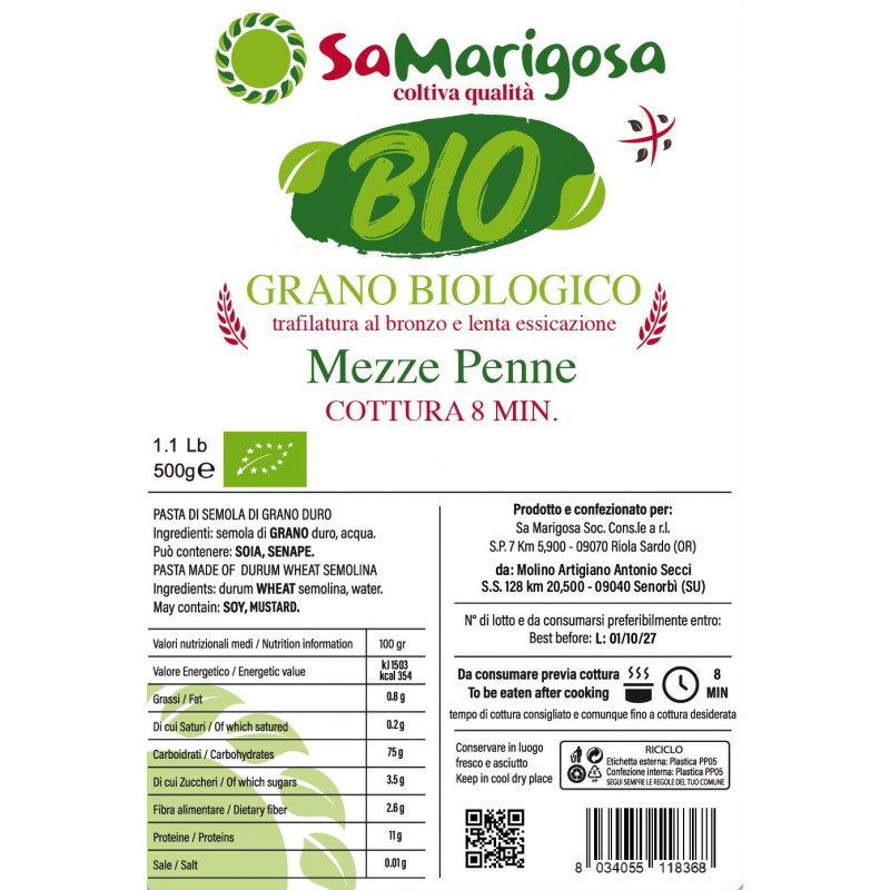 La pasta Sa Marigosa è prodotta utilizzando esclusivamente grano duro sardo * da Agricoltura BIOLOGICA, coltivato e raccolto nei nostri campi in Sardegna.